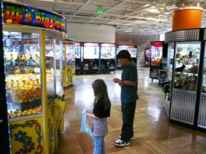 While waiting for that room with a view, we wandered over to the Metreon, which is right next door to the Marriott. This is Andrew in the arcade area of the Metreon. I think I’ve mentioned is claw machine affection, not to mention his mad claw machine skillz (he once won a Game-Boy). The arcade at the Metreon devotes one huge room to claw machines. Just how big?