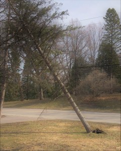 We have a tree problem. And yes, before anyone asks, we’ve called the power company. Also, the tree isn’t actually resting on the power lines … yet. With the wind we’ve been having, it could happen.